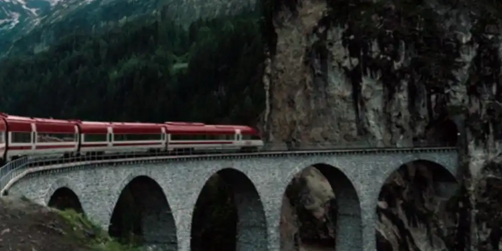 Schon zu Beginn des Films wird die geografische Glaubwürdigkeit mit Hochgeschwindigkeit gegen die Wand gefahren. Als visuelles Alibi dient eine Luftaufnahme des weltberühmten Landwasserviadukts, die dem Publikum suggerieren soll, dass wir uns wirklich in Graubünden befinden. Doch für jede Person, welche die Strecke wirklich befuhr, ist diese Szene purer Slapstick. Während reguläre Schweizer Züge der Rhätischen Bahn (Spurweite: 1000mm) diese Strecke täglich problemlos befahren, ist ein normalspuriger ICE (Spurweite: 1 435mm) schlicht zu breit für diese Gleise. Er würde auf den Schmalspurschienen der RhB sofort entgleisen oder das historische Mauerwerk sprengen.