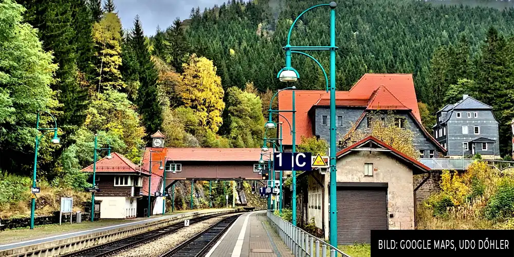 Während dort in der Realität ein bewaldeter Mittelgebirgshintergrund zu sehen wäre, wurde für den Film per Post-Production ein gewaltiges Alpenmassiv eingefügt. Für ein amerikanisches Produktionsteam mag ein weiss-roter Schnellzug vor künstlichen Gipfeln nach der Schweiz aussehen, für unser Auge ist das Betrug. Dass hier ein Symbol modernster Technik über ein Schmalspurdenkmal rollt und danach an einem thüringischen Bahnhof hält, ist ein bizarres Puzzlestück der Inszenierung. Es entlarvt den erzählerischen Widerspruch des Films: Einerseits nutzt man die technologische Moderne als Kulisse, andererseits wird die lokale Bevölkerung als völlig rückständig und isoliert dargestellt. Um es in Relation zu setzen, wäre das gesamte Setting so, als würde man versuchen, einen Ozeandampfer über den Zürichsee zu manövrieren.